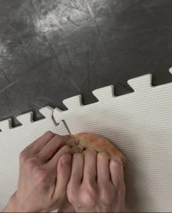 1. 指の付け根から5本指を引っ張って中に丸く織り込むようにします
