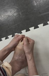 大人の入門クラスで行っている’足の指を動かすエクササイズ’で、足先まで血液を流しましょう!